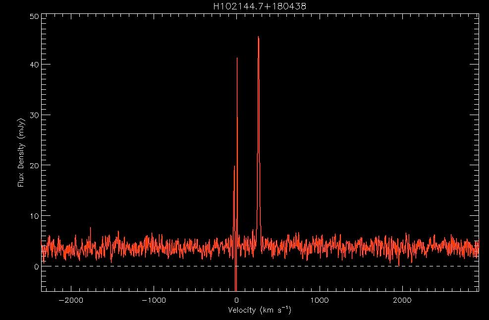horizontal axis in frequency units (top) and then velocity units (bottom). Here, the